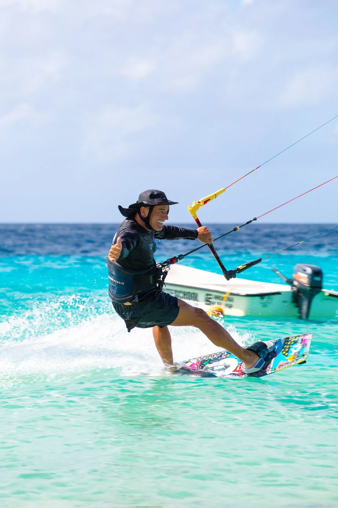 Action-packed shots of kiteboarding and windsurfing on the stunning shores of Bonaire. Feel the thrill of adventure against the island’s turquoise waters and vibrant skies